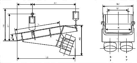 粉體振動給料機給料過程是利用特制的振動電機或兩臺電動機帶動激振器驅動給料槽沿傾斜方向作周期直線往復振動來實現,當給料槽振動的加速度垂直分量大于重力加速度時,槽中的料被拋起,并按照拋物線的軌跡向前跳躍運動,拋起和下落在瞬間完成,由于激振源的連續激振,給料槽連續振動,槽中的煤連續向前跳躍,以達到給料的目的。