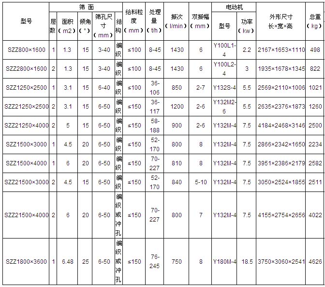 SZZ型自定中心振動(dòng)篩技術(shù)性能及參數(shù)