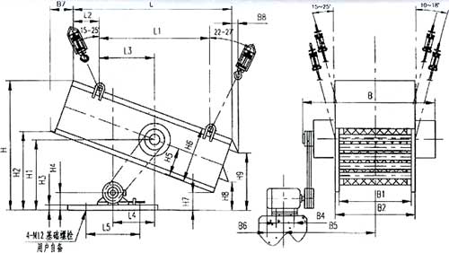 圖5 SZZ21500×3000自定中心振動(dòng)篩安裝尺寸