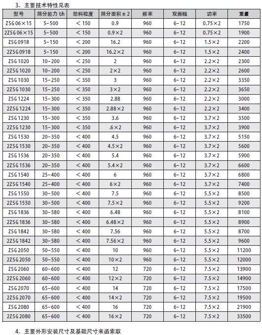?。?)敝開型(ZSG-□×□)為座式,無防塵蓋板,結構,用于大篩分能力、無粉塵污染的顆粒物料的篩分作業